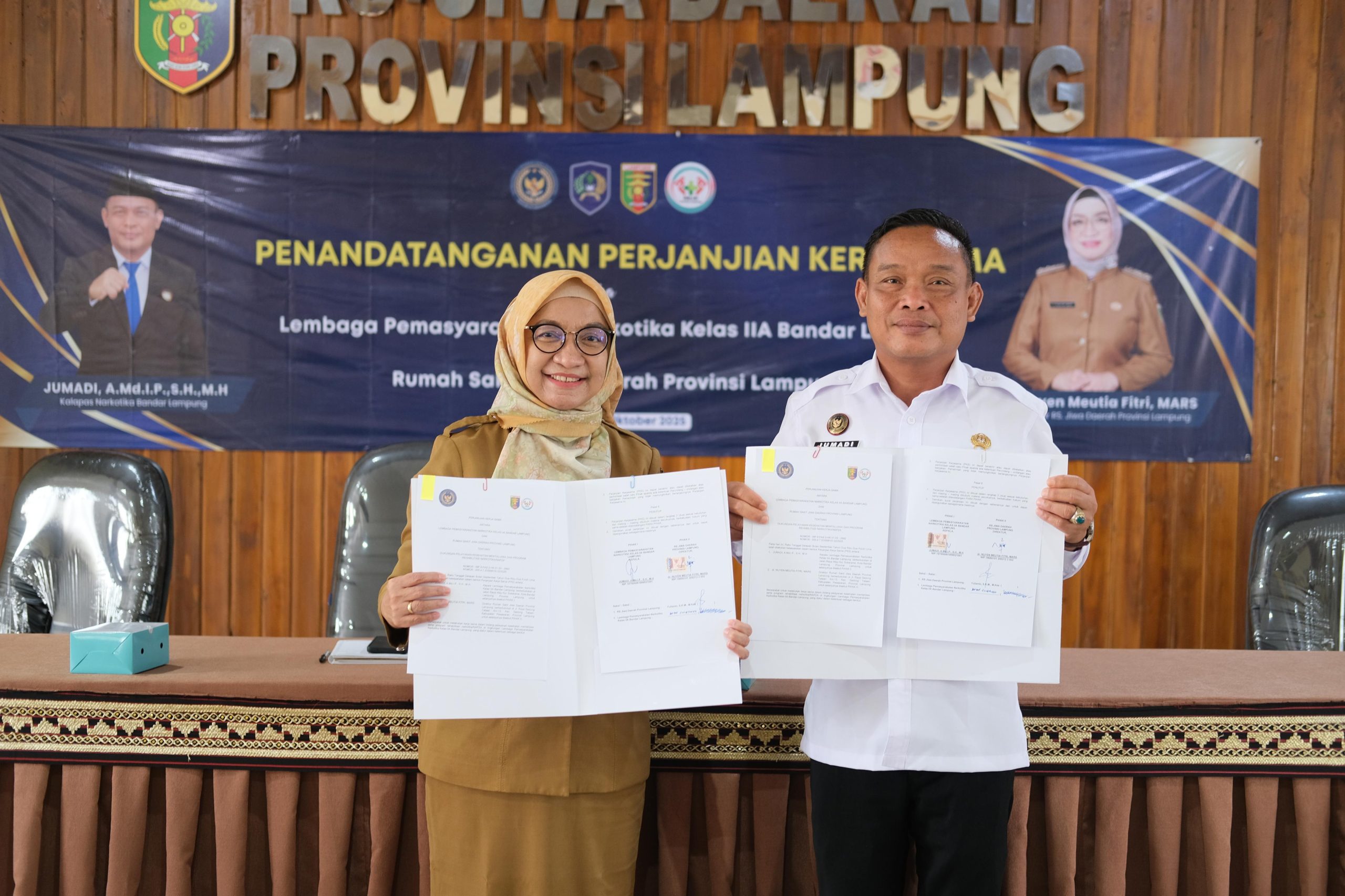 INDOLIVENEWS.COM, Bandar Lampung, – Lembaga Pemasyarakatan (Lapas) Narkotika Kelas IIA Bandar Lampung resmi menjalin kerja sama dengan Rumah Sakit Jiwa Daerah (RSJD) Provinsi Lampung dalam bidang pelayanan kesehatan mental dan program rehabilitasi narkotika/napza. Selasa (21/10).